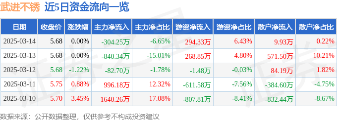 jinnianhui金年會官方網(wǎng)站入口股票行情快報:武進不銹(603878)3月14日主力資金凈賣出30425萬元證券之星消息,截至2025年3月14日收盤,武進不銹(603878)報收于5.68元,上漲0.0%,換手率1.44%,成交量8.1萬手,成交額4574.43萬元。