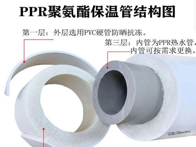 聚氨酯保溫管是多層復(fù)合結(jié)構(gòu),常以PPR管、鋼管或者PE管作為輸送管道,中間是聚氨酯硬質(zhì)泡沫保溫層,外層則包裹PVC、PE等管道作為防護(hù)層。內(nèi)管會(huì)根據(jù)使用場(chǎng)景,發(fā)揮耐腐蝕、衛(wèi)生安全、承壓能力強(qiáng)等特點(diǎn),像PPR管可以確保輸送水質(zhì)純凈,適用于生活熱水供應(yīng)管道,鋼管可以承受高壓,多數(shù)用于工業(yè)和大型供熱工程。金年會(huì)金字招牌信譽(yù)至上聚氨酯保溫層也是很關(guān)鍵的一部分,它的導(dǎo)熱系數(shù)極低,處于0.016-0.033W/(m?K) ,閉孔率常超過(guò)了90%有效阻隔熱量傳遞。外層防護(hù)層具備出色的抗紫外線、抗老化和耐腐蝕性,抵御外部不良環(huán)境的侵蝕,延長(zhǎng)管道使用壽命。