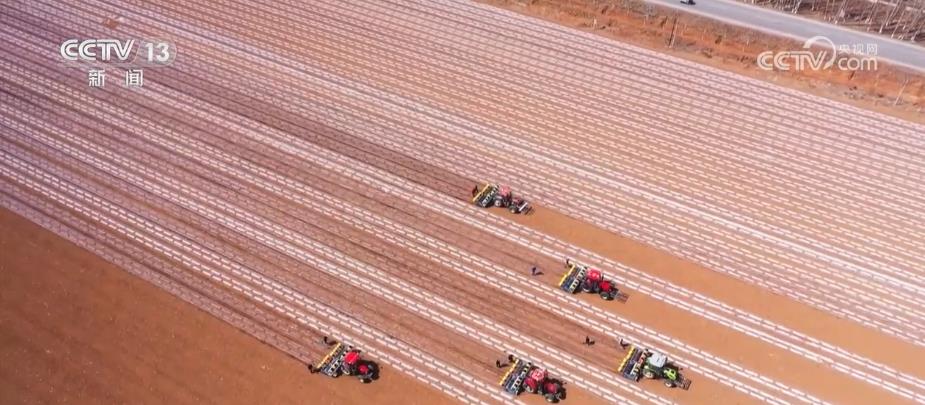 眼下,新疆瑪納斯縣65萬(wàn)畝棉花全面開(kāi)播。在文家莊村的棉田里,五臺(tái)裝有北斗導(dǎo)航系統(tǒng)的大馬力拖拉機(jī),正按照預(yù)先設(shè)定的播種線路,進(jìn)行精量播種。
