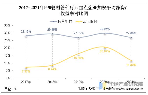 近年來,偉星新材和公元股份的PPR管材管件毛利率走勢都較為平穩(wěn),偉星新材的PPR管材管件毛利率在55%左右,公元股份的PPR管材管件毛利率在40%左右。2021年,其中,jinnianhui金年會官網(wǎng)偉星新材的PPR管材管件行業(yè)毛利率為55.2%,較上年減少了1.1個百分點;公元股份的PPR管材管件行業(yè)毛利率為39.7%,同比減少了4.2個百分點。